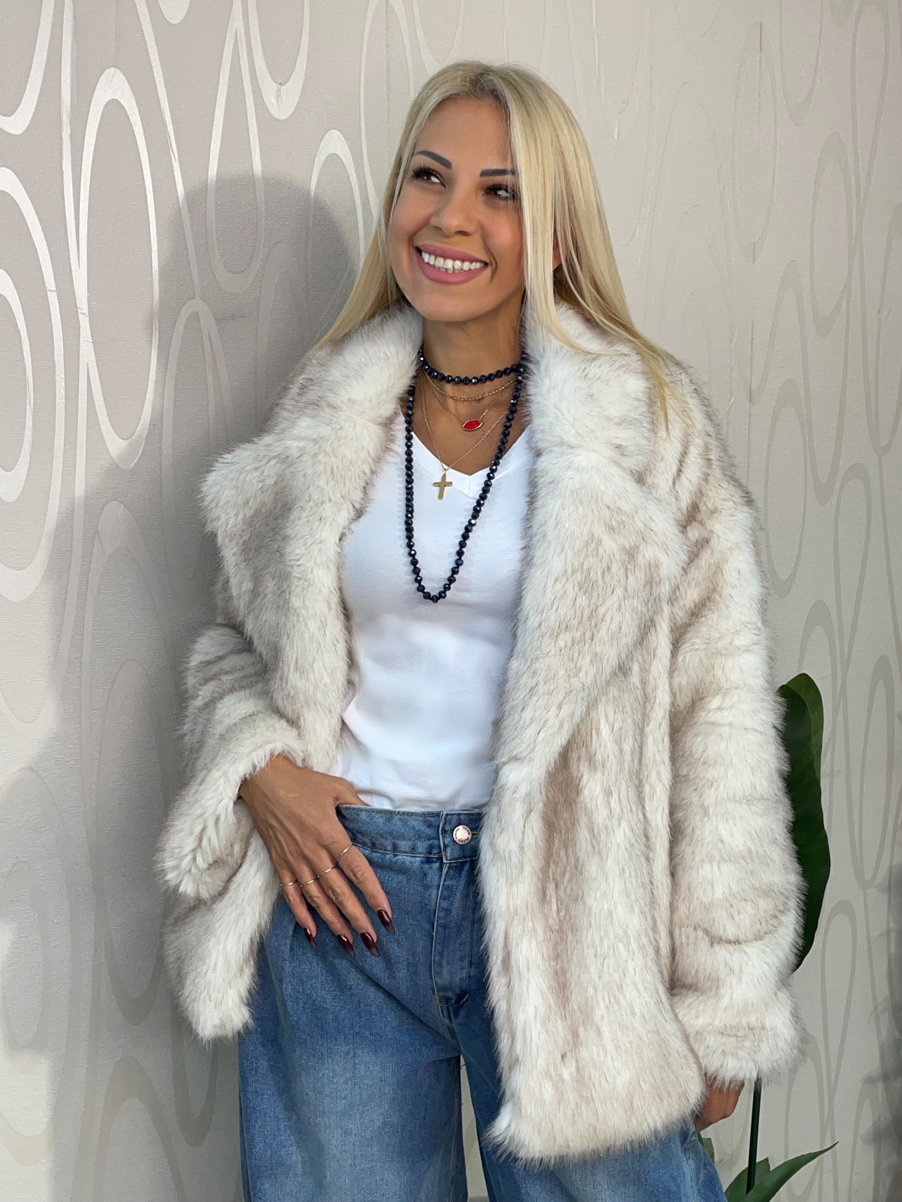 Γυναικεία Μακριά Συνθετική Γούνα σε Μπεζ