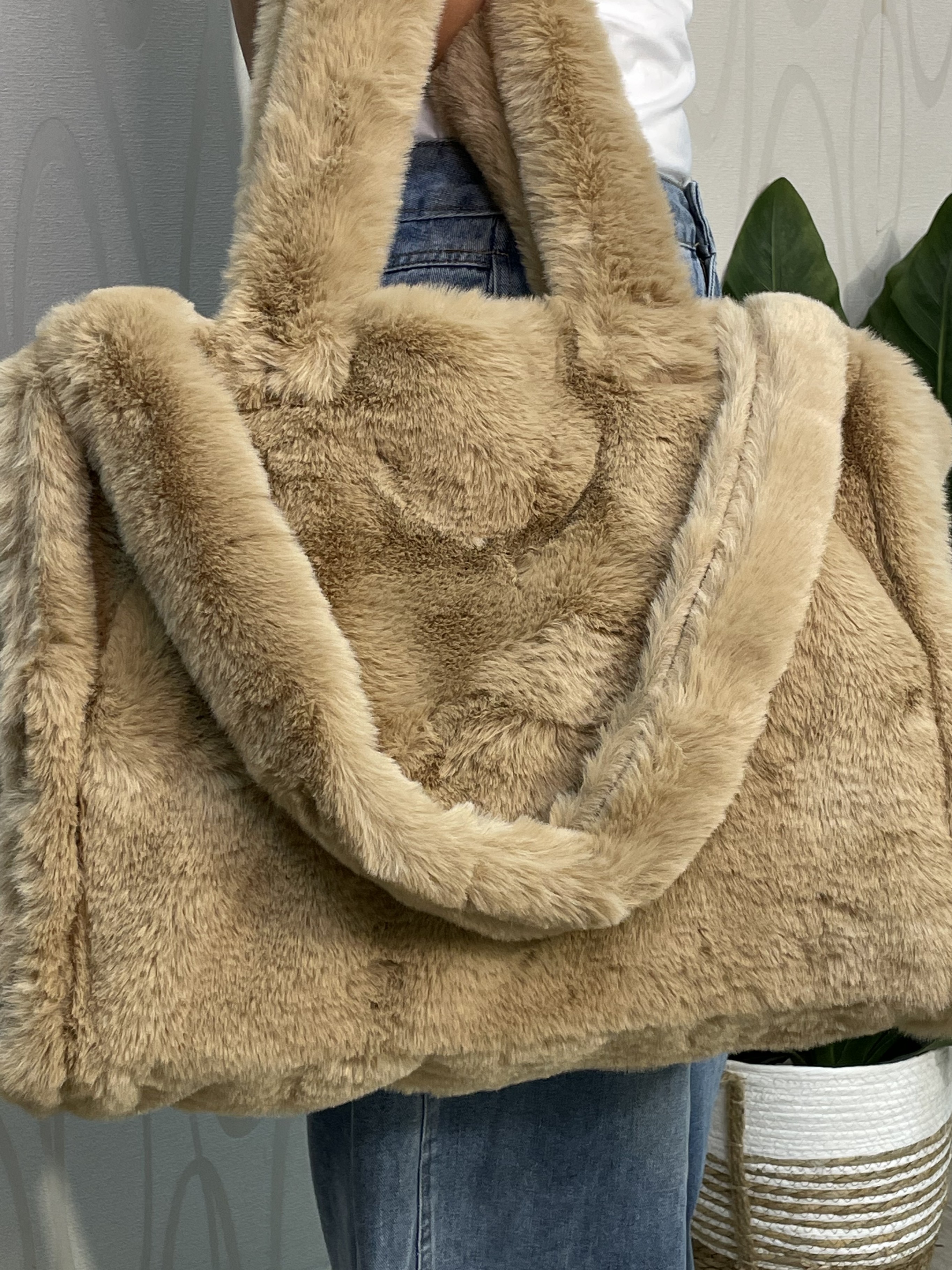 Γυναικεία τσάντα Desiderio από συνθετική γούνα σε μπεζ απόχρωση. Ευρύχωρη και άνετη, ιδανική για καθημερινή χρήση, ενώ η απαλή υφή της δίνει cozy χαρακτήρα στις εμφανίσεις σου. Μπορεί να φορεθεί από το πρωί μέχρι το βράδυ, συνδυάζεται εύκολα με casual αλλά και πιο ιδιαίτερα outfits. Από 80€ τώρα μόνο 39,90€.
