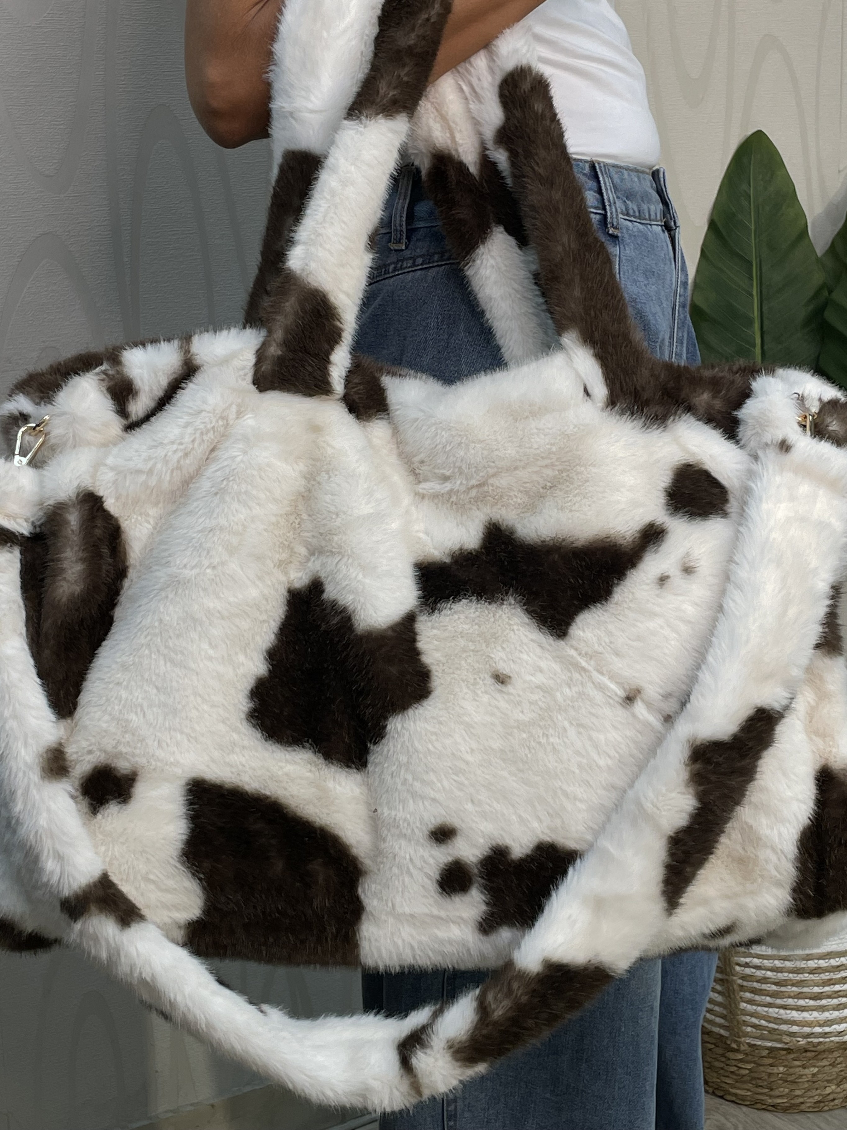 Γυναικεία τσάντα Desiderio από συνθετική γούνα με animal print σε λευκό-καφέ. Ευρύχωρη και άνετη tote bag με ιδιαίτερο μοτίβο που δίνει stylish χαρακτήρα σε κάθε εμφάνιση. Διαθέτει χερούλια και αποσπώμενο λουράκι για πολλαπλούς τρόπους χρήσης. Ιδανική για καθημερινό look αλλά και πιο fashionable συνδυασμούς. Από 80€ τώρα μόνο 39,90€.