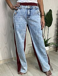 Γυναικείο τζιν παντελόνι jogger με μοναδικό design διχρωμίας: μπροστά σε washed denim και πίσω σε μπορντό απόχρωση. Διαθέτει λάστιχο στη μέση για άνετη εφαρμογή και ρυθμιζόμενα κορδόνια στο τελείωμα. Ένα ξεχωριστό κομμάτι που συνδυάζει το casual με το sporty chic, ιδανικό για stylish εμφανίσεις. Από 60€ τώρα μόνο 29,90€.
