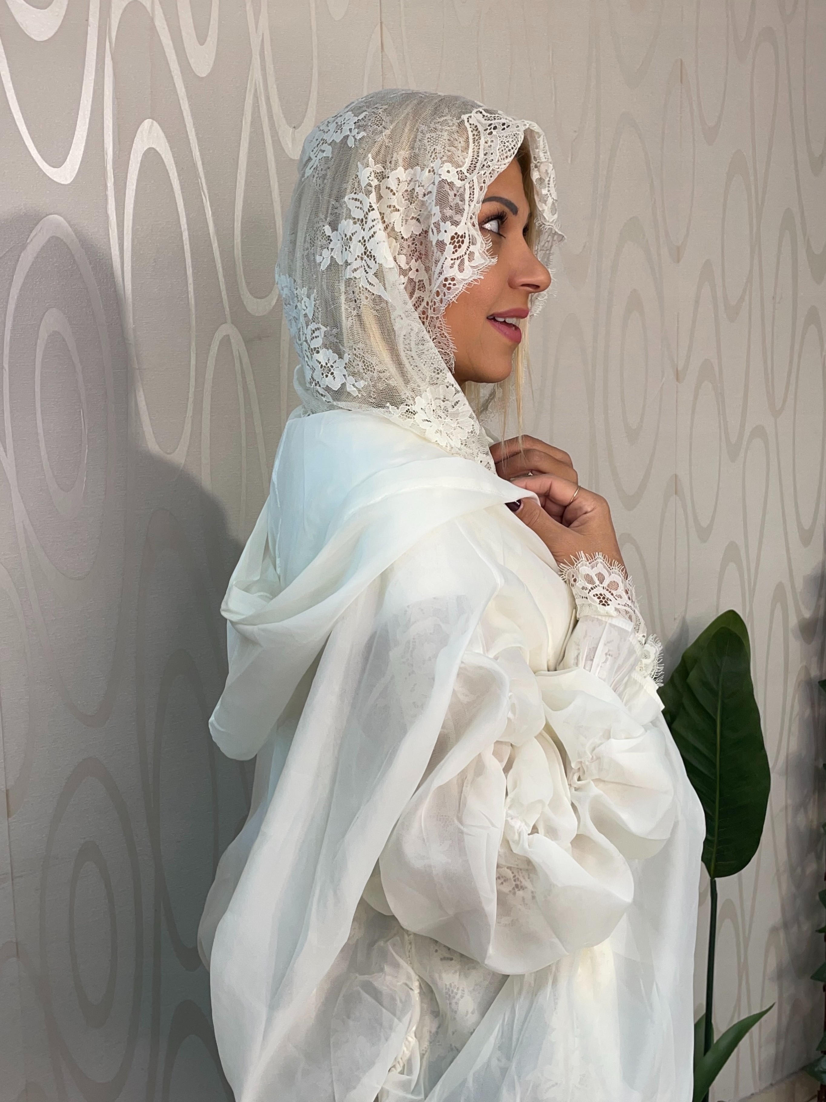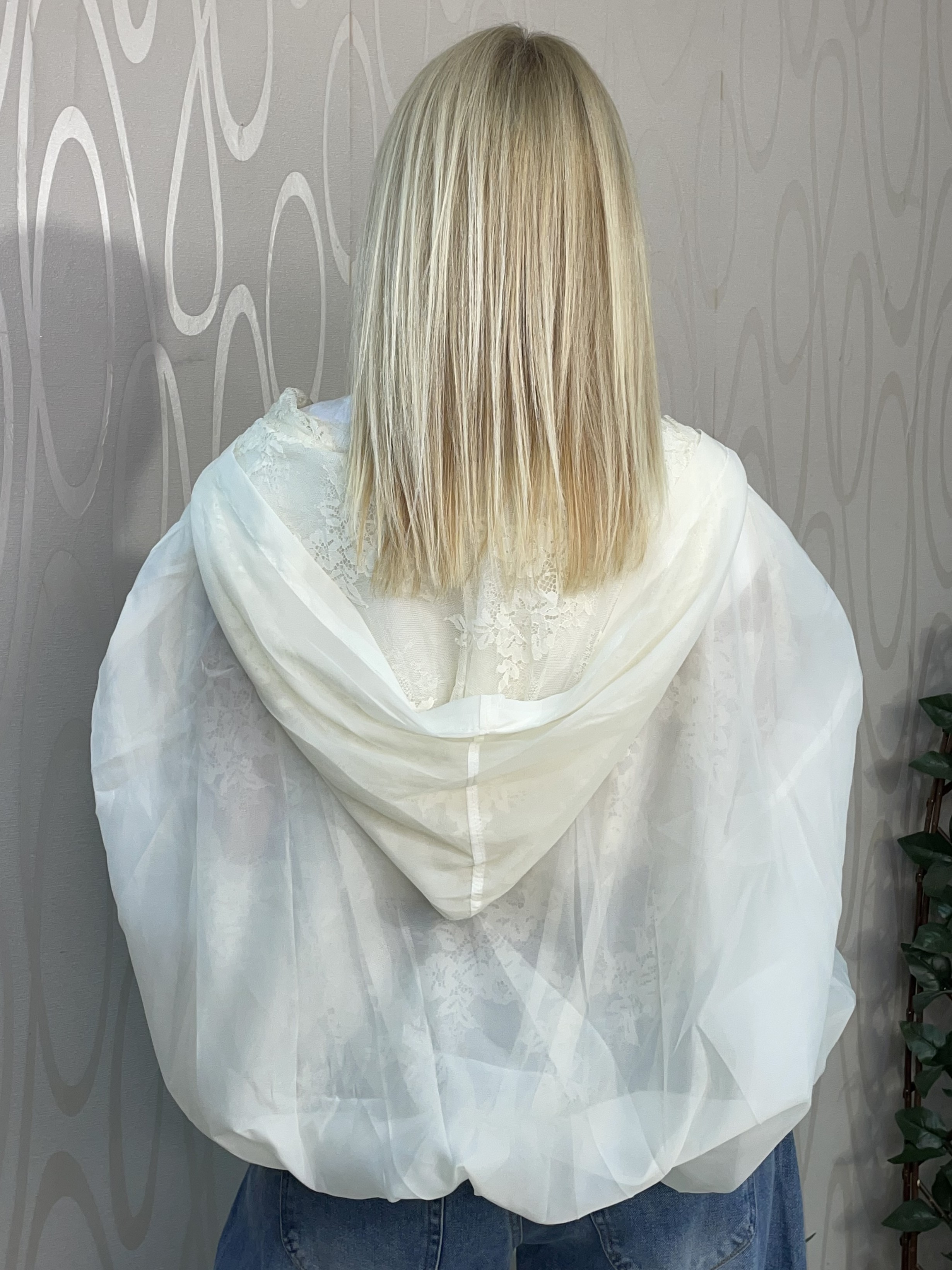 Τζάκετ Λευκό με κουκούλα και δαντέλα